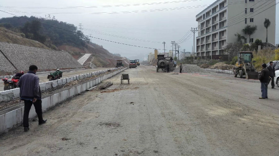 項目情況:項目起點與青竹路相接,終點與已建成的北三環(huán)路(福建龍州工業(yè)園區(qū)段)相連,全長2700米,寬40米,概算投資20640萬元,分兩個道路施工標段和一個高邊坡防護施工標,于2013年10月8日開工建設(shè)。目前已完成土石方90萬方,約占總量的92%,雨污水管道2100米,約占總量的80%,路基成型1820米,總計完成投資14000萬元(含拆遷)。目前已開始部分路段路面結(jié)構(gòu)層施工。