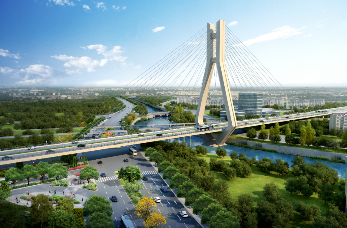 龍巖大道高架橋項目為省、市重點(diǎn)建設(shè)項目,是龍巖中心城市連接南北、溝通新老城區(qū)的重要樞紐,項目位于龍巖市南北交通中心軸和景觀軸線龍巖大道上,全長3395m,包含橋梁和地面道路兩大部分,其中橋梁工程總長2329m,橋?qū)?6m,包含一座190+150m獨(dú)塔斜拉索鋼箱梁主橋(主橋?qū)?6.3m),全線設(shè)計為雙向六車道,設(shè)計車速60km/h,在西陂路及人民路處各設(shè)置上下匝道,跨越雙洋路、羅龍東路、人民路、登高西路、西陂路城市主干道,項目總投資約24億元。