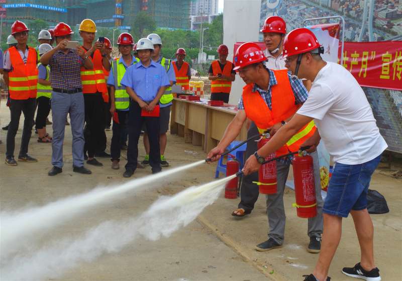 6月16日是“全國安全生產(chǎn)宣傳咨詢?nèi)铡薄.斎?,龍巖城發(fā)集團與市城投公司組織人員分別前往中心城區(qū)華蓮西路一期、火車站站前高架橋、龍巖大橋高架橋、龍巖大道四期下穿工業(yè)路通道等四個項目工地,開展安全生產(chǎn)宣傳活動。圖為工作人員現(xiàn)場指導(dǎo)工人使用滅火器。