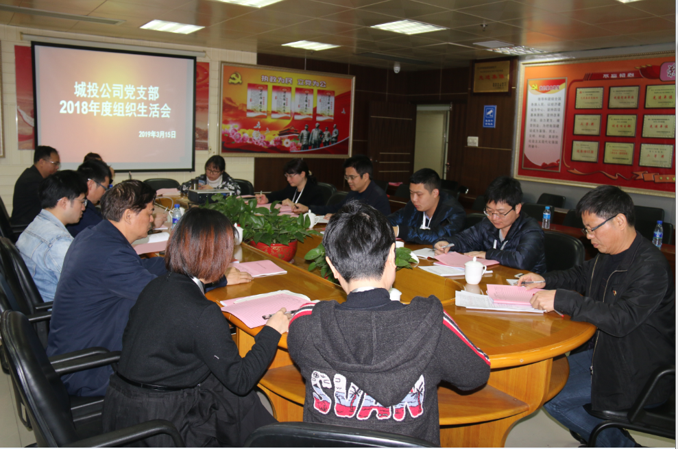 2019年3月15日上午,城投公司黨支部全體黨員在三樓會議室召開2018年度組織生活會暨民主評議黨員大會。會議由黨支部副書記藍茂瑞主持,城發(fā)集團黨委副書記陳明參加了會議。