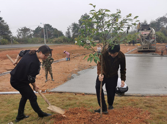 活動中,市政集團員工積極參與,勞動情趣高漲,大家手持鐵鍬,干勁十足,將一顆顆充滿生機和希望的櫻花樹苗植入坑內,樹苗種下后,大家又為它們澆灌生命之水,看著自己親手種下的樹苗在微風中搖曳,全體人員無一不露出幸福的笑容,并爭相站在小樹苗旁進行合影留念。