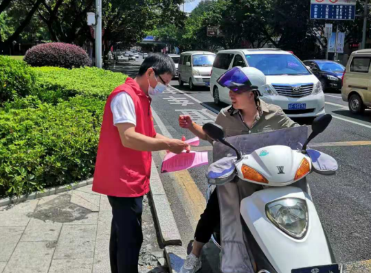 八月末,天氣炎熱,市政集團(tuán)的志愿者們身著紅馬甲,不畏臟、不怕累,各司其職,分時(shí)段分批次在蓮新社區(qū)范圍內(nèi)開展創(chuàng)城活動,其中清潔崗的志愿者們帶著夾子、掃帚、垃圾袋等清掃工具,對街道路面的紙屑、塑料袋、煙頭等生活垃圾進(jìn)行清掃,將亂停亂放的自行車整齊的排列在停車位上,使得街道整潔一新。宣傳崗的志愿者們走進(jìn)商鋪,發(fā)放文明宣傳標(biāo)語,動員商鋪店主一起,注意門前三包,在平時(shí)營業(yè)工作中,遇到不文明行為時(shí),進(jìn)行及時(shí)規(guī)勸,讓市民自覺遵守,規(guī)范自身行為,積極踐行“共創(chuàng)共享”的創(chuàng)城理念,共同為創(chuàng)建文明城市出一份力。交通崗的志愿者們通過積極引導(dǎo)道路交通,向過往行人科普創(chuàng)城溫馨小知識,加強(qiáng)城市文明建設(shè)。